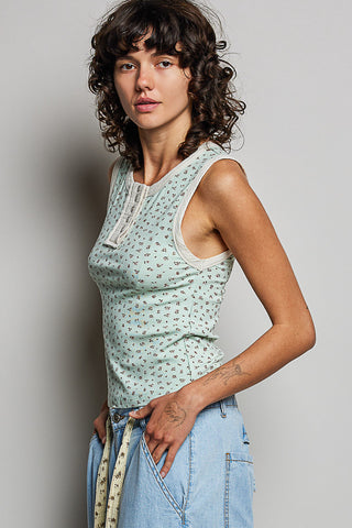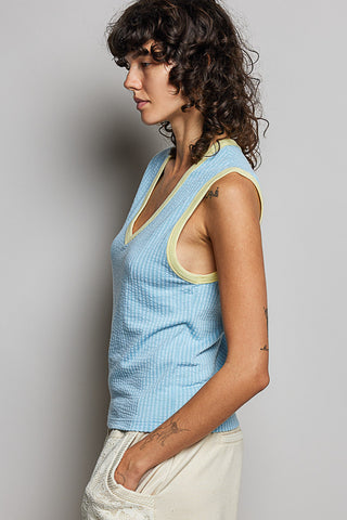 Jaylin V-Neck Sleeveless Solid Contrast Rib Knit Top