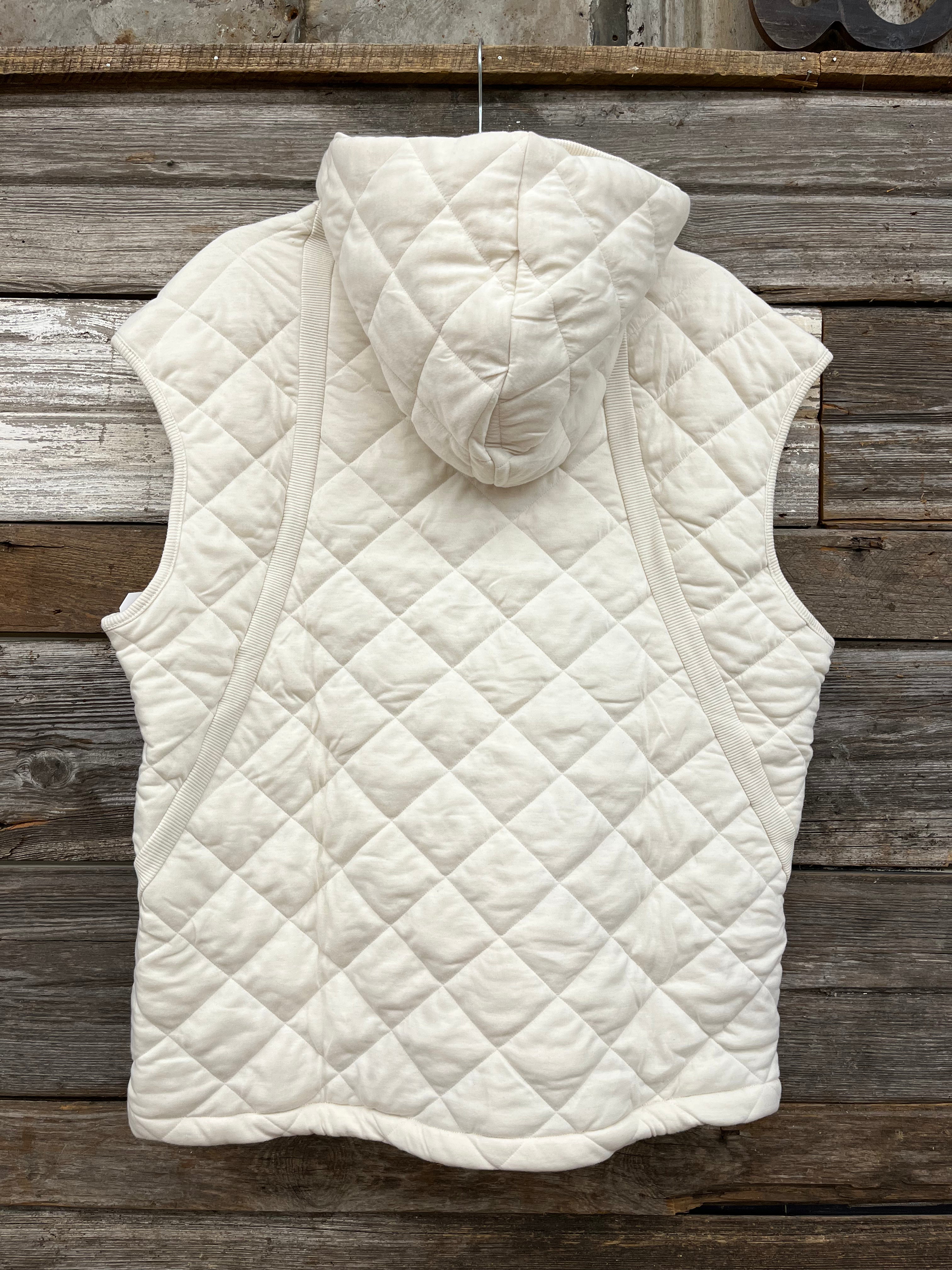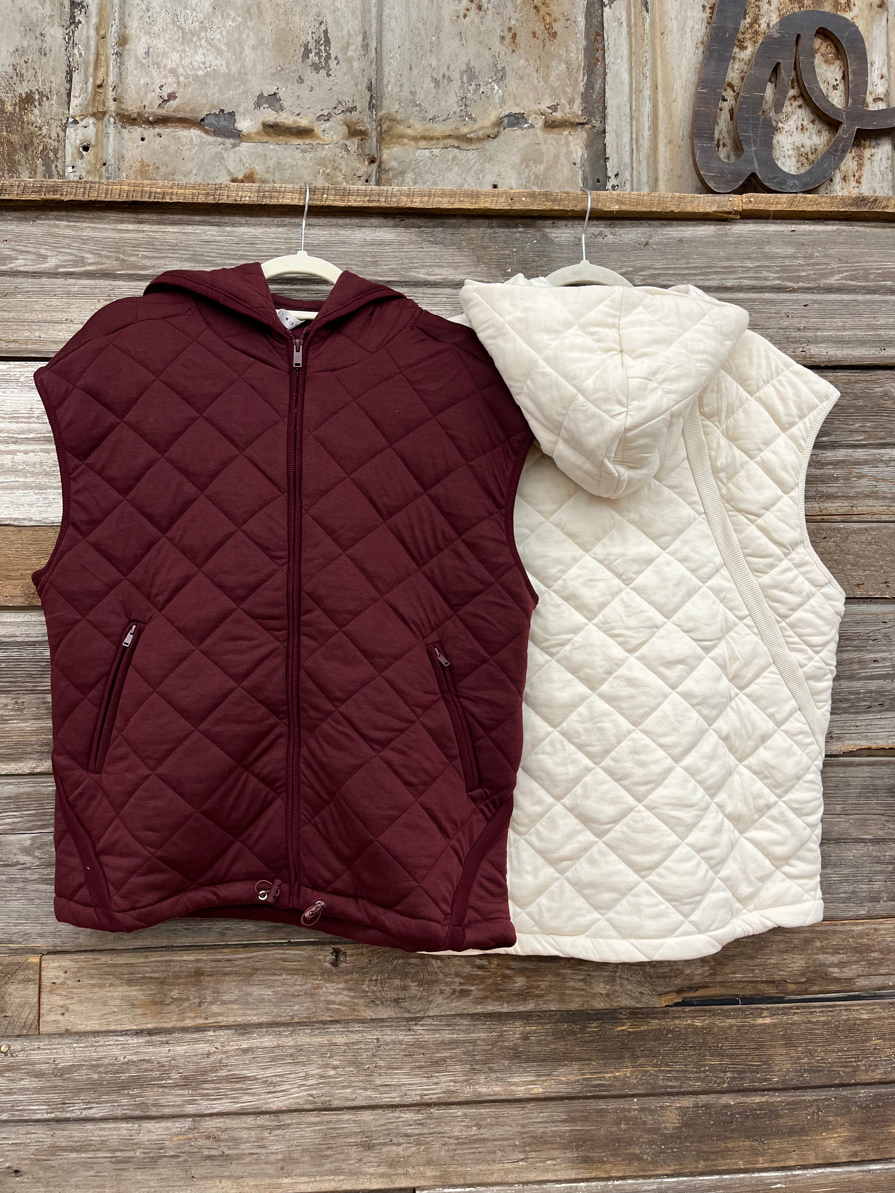 Stay cozy and stylish as the seasons change with the Jasmine Quilted Hoodie Vest. Featuring a playful quilted texture and eye-catching accent stitching, this vest offers a generous fit perfect for layering from fall to winter. Keep your essentials close with convenient zippered pockets, and enjoy the extra warmth and fun flair of its comfy hood. Effortless cool meets cozy comfort in one versatile piece!