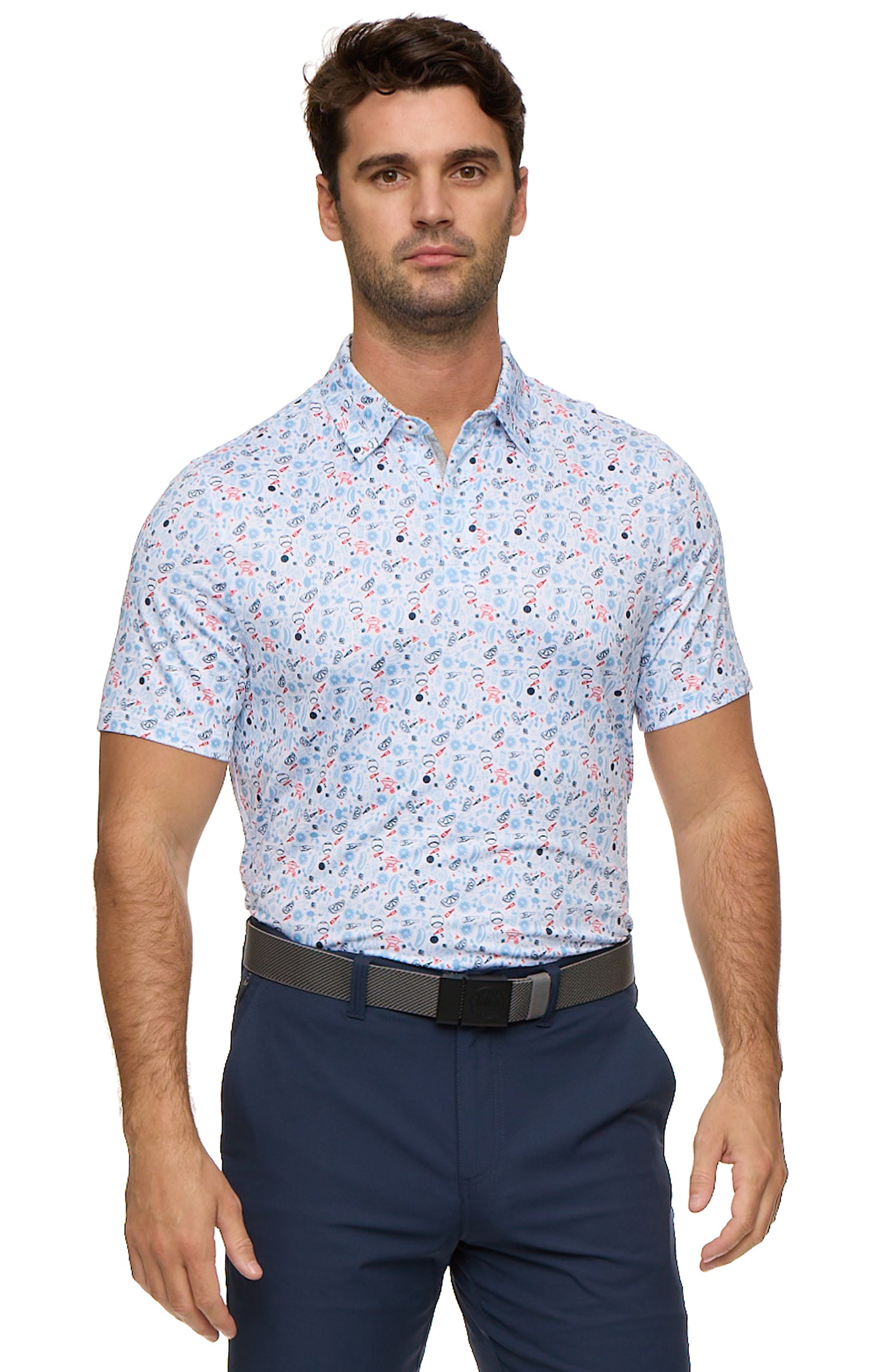 Effortless summer style meets timeless Americana. This lightweight polo features a classic print that captures patriotic charm without the weight. Perfect for warm days, casual gatherings, or weekend adventures. The breathable fabric keeps you cool while the refined collar and clean lines deliver polished sophistication. A versatile essential that transitions seamlessly from backyard barbecues to relaxed outings.
